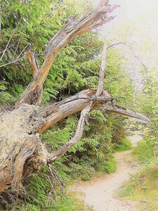 Begin 2007 hield de orkaan Kyrill verwoestend huis in het Sauerland vlakbij het dorpje Schanze en een spoor van vernieling achter. Een deel van de niet geruimde verwoesting is gelaten zoals het was om zo de gevolgen ervan zichtbaar te laten. Zo hebben rangers van de Rothaarsteig eigenhandig het Kyrill-pad aangelegd. Alle foto's in deze serie zijn op dit pad genomen.